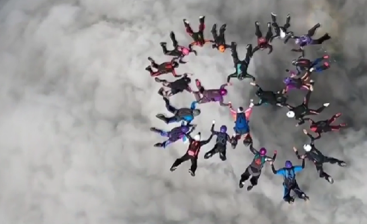 El grupo de paracaidistas se lanzaron de dos aviones en Australia y formaron una ronda en su primer intento, por lo que lo volvieron a intentar y lo rompieron por segunda ocasión.